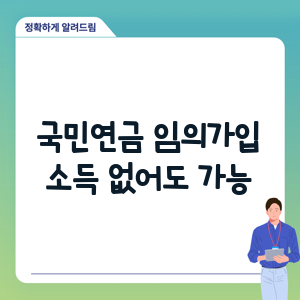 국민연금 임의가입 제도를 활용하면 소득이 없어도 국민연금에 가입할 수 있습니다. 이를 통해 연금 수령액을 높일 수 있으며, 언제든 탈퇴할 수 있습니다. 국민연금 외에도 다양한 노후 준비 수단을 활용하는 것이 좋습니다.
