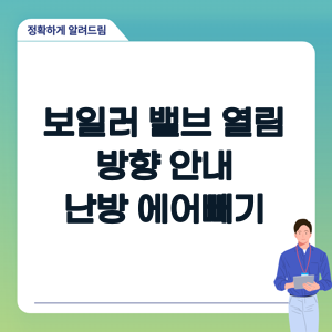 보일러 분배기 밸브를 조절했음에도 불구하고 난방이 잘 되지 않는다면, 배관 내 에어가 차 있을 가능성이 있습니다. 이 경우 에어빼기 작업을 통해 문제를 해결할 수 있습니다.
