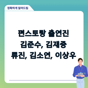 이 글에서는 '편 스토 랑'의 출연진들, 특히 김준수, 김재중, 류진, 김소연, 이상우 등 주요 출연진들의 활약상을 살펴보고자 합니다. 그들이 어떤 매력을 발산하며 프로그램을 이끌어 가고 있는지 자세히 알아보겠습니다.
