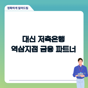 어떤 금융 서비스를 필요로 하시나요? 대신저축은행 역삼지점이 당신의 금융 생활에 새로운 기회를 제공할 수 있을 것입니다.